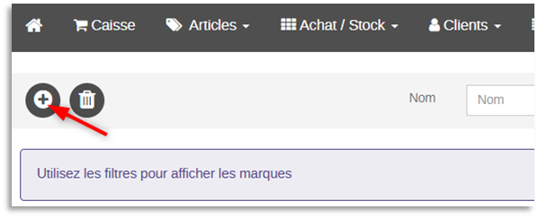 Allez dans « Articles », puis cliquez sur « Marque» Cliquez en haut à gauche sur « + »