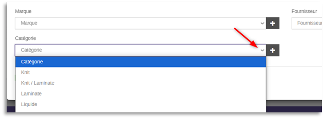 Les Catégories peuvent être crées directement depuis la fiche article grâce au bouton « + » ou via le menu Articles > Catégories.