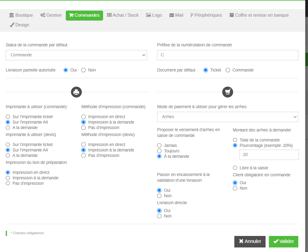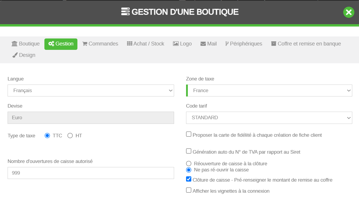 La grande majorité des paramÚtres de gestion est définie au niveau de la boutique.