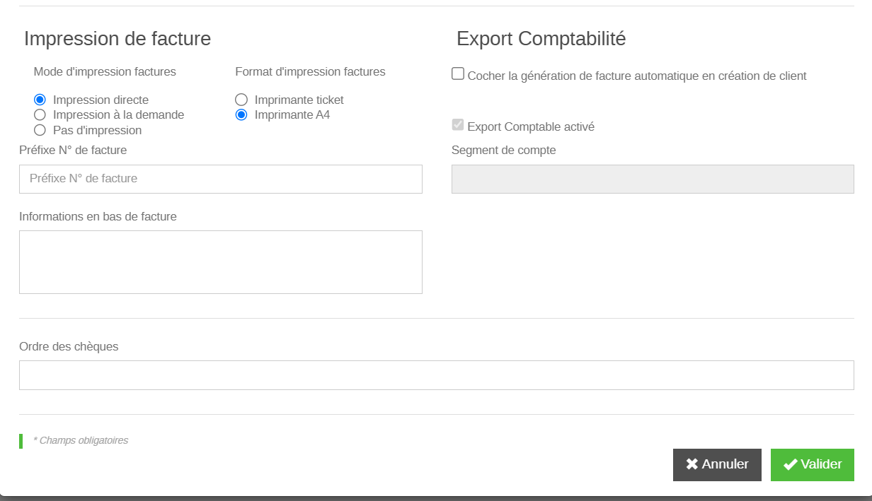 Impression directe : Imprime directement de la facture aprĂšs validation