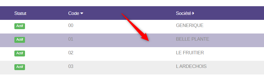 On peut alors sélectionner chaque fournisseur en cliquant sur la ligne correspondante :