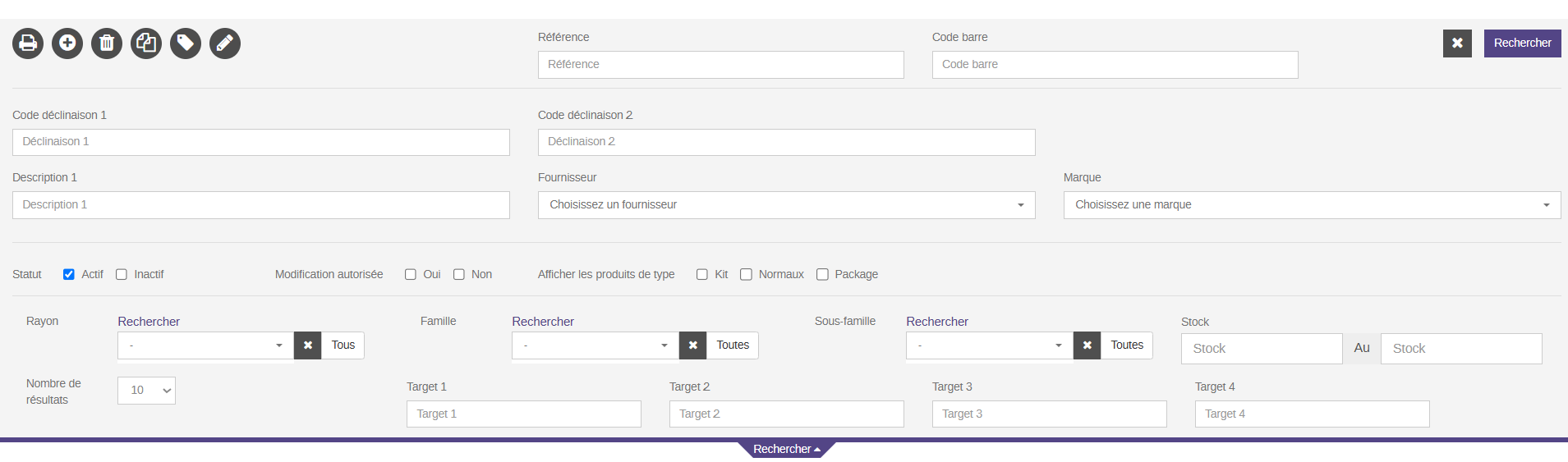 Pour cibler un article précis (hors nomenclature, marque etc.), 3 champs sont possibles :