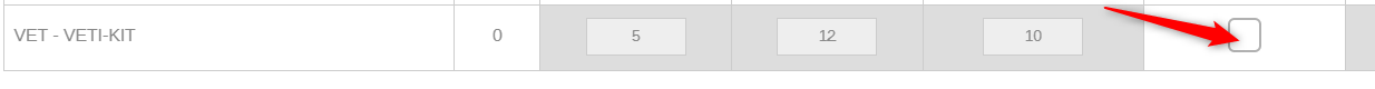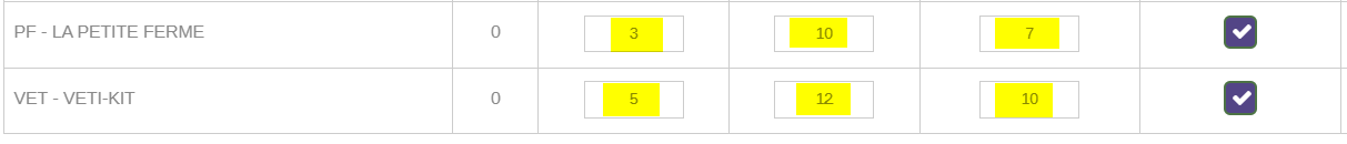 Les cases à droite permettent d’autoriser le réassort (à cocher dans ce cas) ou non. Si on décoche cette case, la ligne se grise (la saisie des quantité devient impossible) et l’article ne sera jamais proposée dans les propositions de réassort :