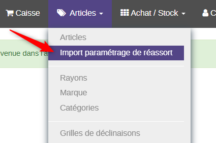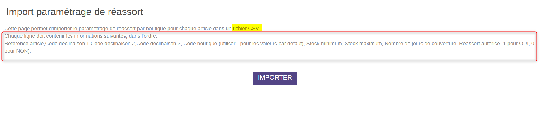 Aller dans l’Administration > Articles > Import paramétrage de réassort :
