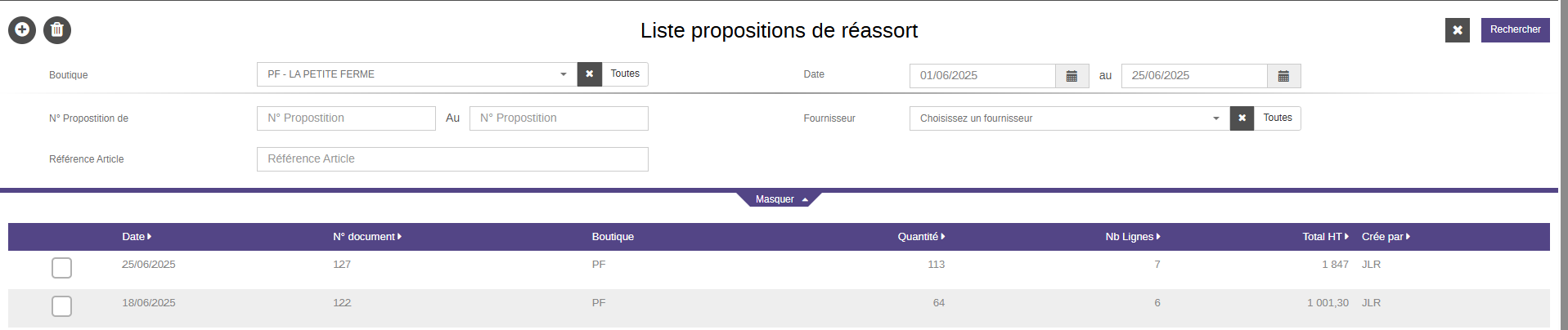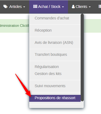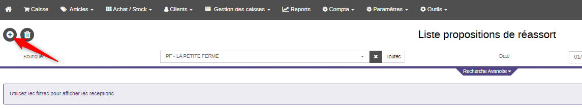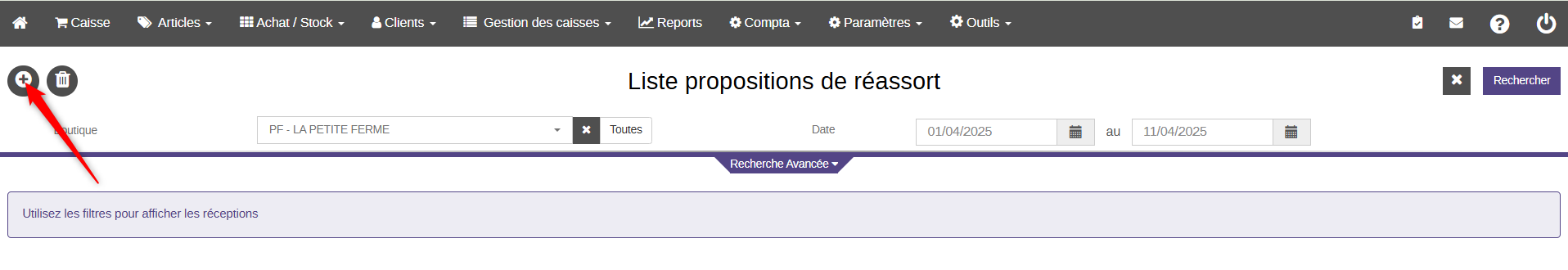 La fonctionnalité de propositions de réassort n’est disponible qu’avec l’abonnement gestion des stocks et si la gestion des stocks est activée pour la boutique sélectionnée.