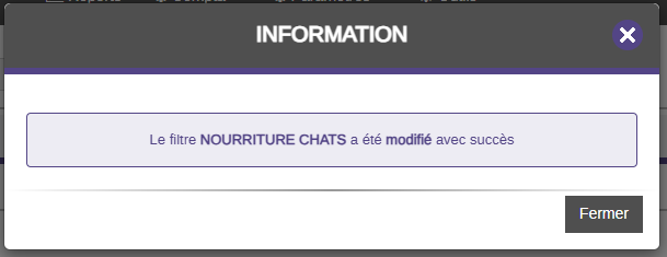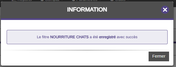 - Cliquer sur enregistrer (le nom du filtre apparaît, on peut le modifier si besoin)
