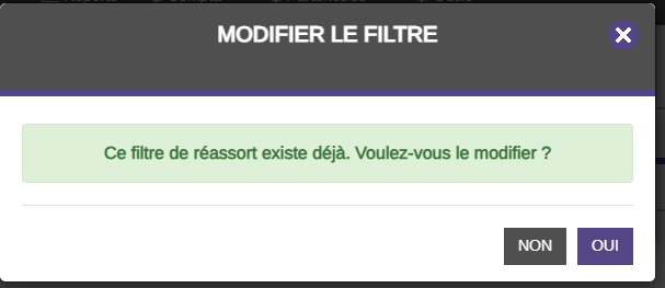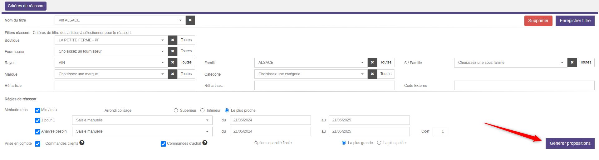 Cette page s’ouvre, avec les filtres et les règles de réassort :