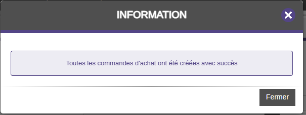 - On retrouve ensuite le numéro de la commande d’achat générée