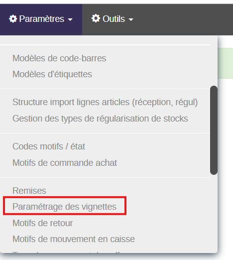 • Allez sur le module "Paramètres" • Cliquez sur le bouton "Paramétrage des vignettes"