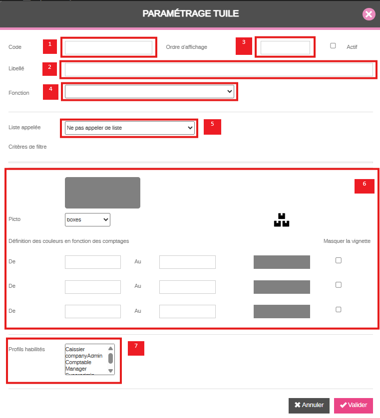 7- Profils habilités : définit le(s) profil(s) pouvant visualiser la vignette à la connexion.