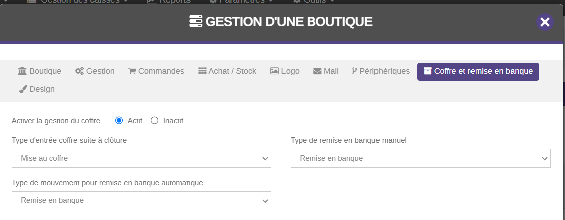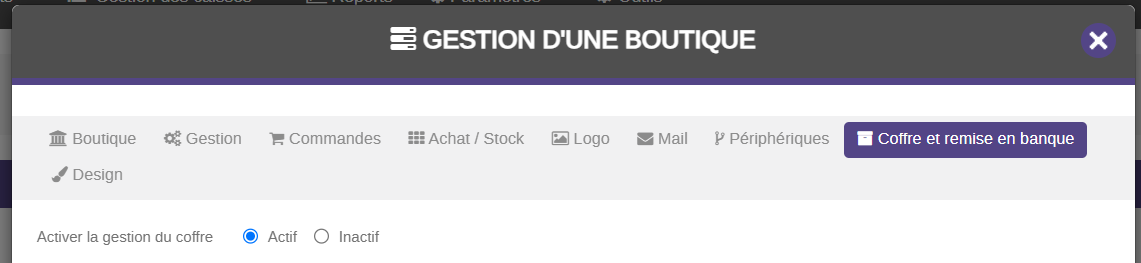 Activer la gestion du coffre depuis la fiche boutique