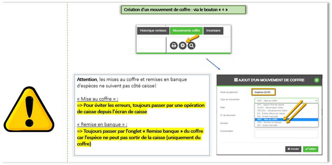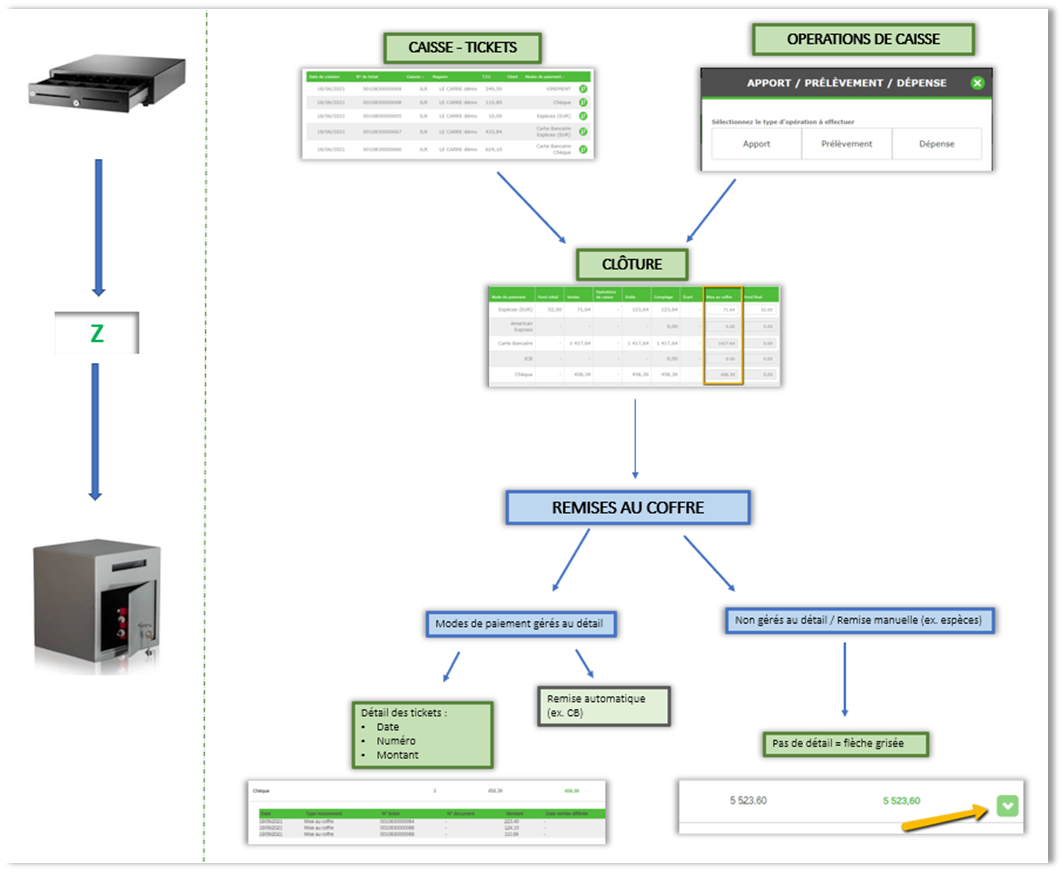 ‘Mise au coffre’ pour le type d’entrée coffre suite à clôture de caisse,