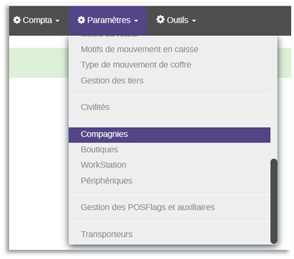 - Puis cliquez sur « Paramètres » puis « Compagnies » :
