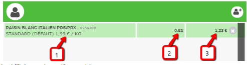 1 : Le prix au poids est affiché sur la ligne de l’article
