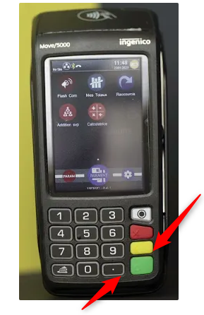 Cliquer au même temps sur le bouton jaune et le bouton du point pour un petit moment jusqu’à redémarrage du TPE