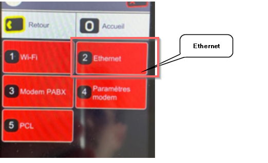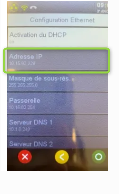 sélectionnez "Active" puis "IP/Eth". Valider avec le rond vert.