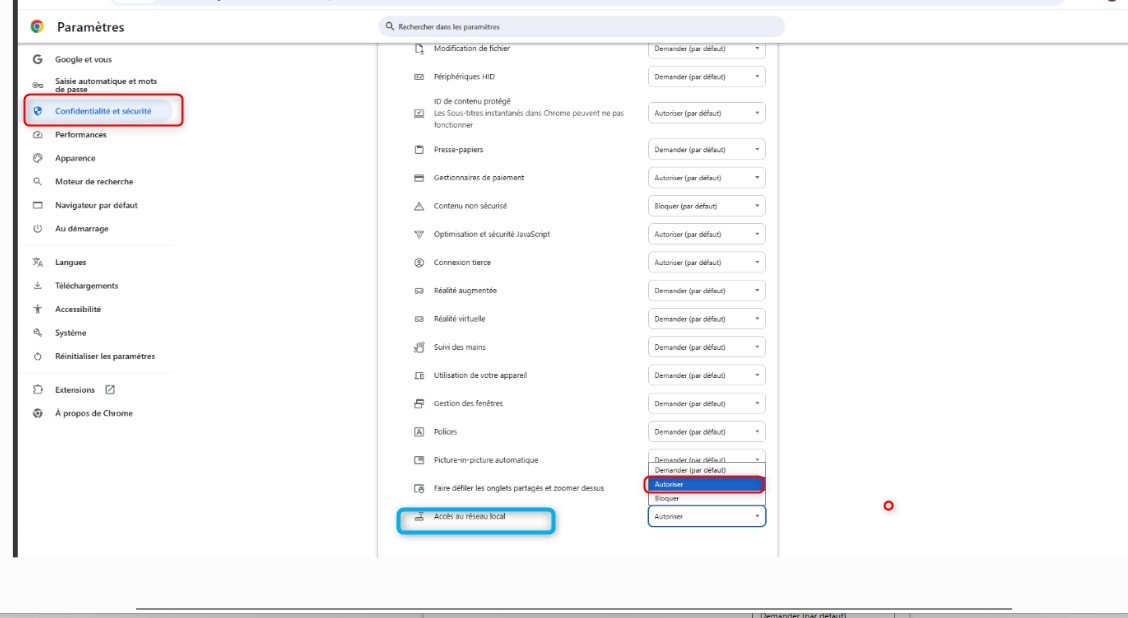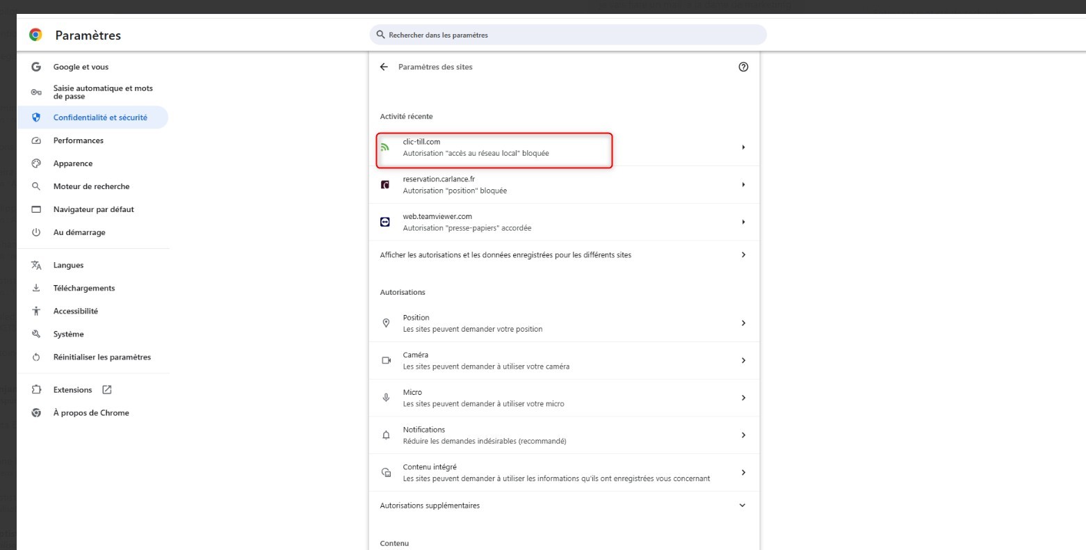 - Ensuite autoriser l’accès au réseau local pour le site https://www.clic-till.com